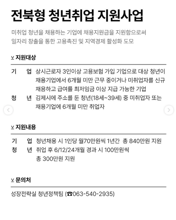 - 문의: 성장전략실 청년정책팀 (☎ 063-540-2935)