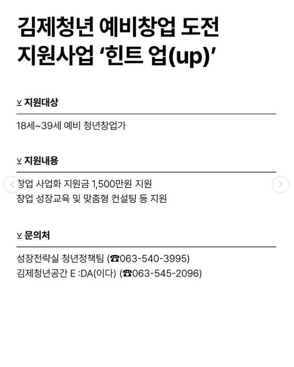6. 김제청년 예비창업 도전 지원사업 ‘힌트 업(up)’ 🚀