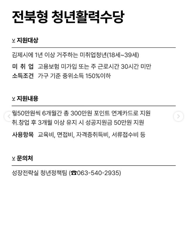 - 대상: 김제시에 1년 이상 거주하며 미취업 상태인 18세~39세 청년.