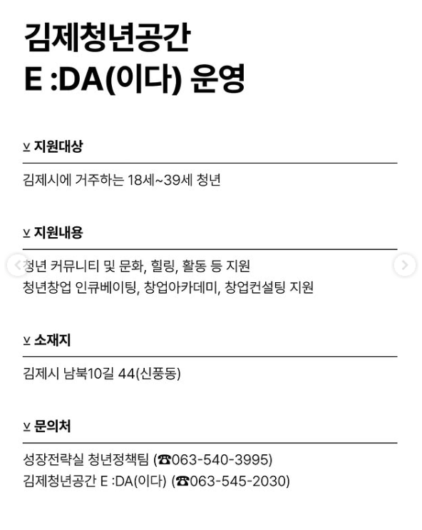 - 김제청년공간 E:DA (☎ 063-545-2030)