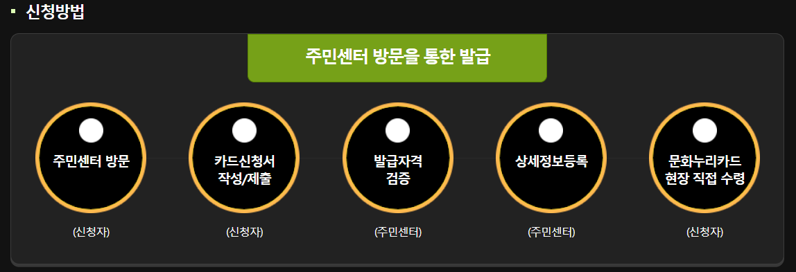 - 방법: 주민센터 방문 또는 문화누리카드 누리집에서 신청