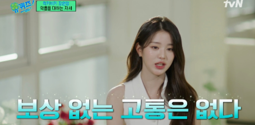 장원영은 “생각과 말에도 에너지가 있다”며, 불안하거나 부정적인 감정이 들 때 이를 긍정적으로 바꾸는 것이 얼마나 중요한지 강조했습니다.