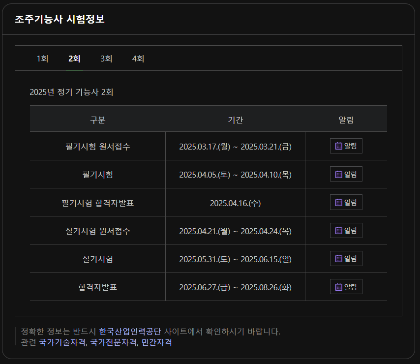 📅 2025년 조주기능사 시험 일정