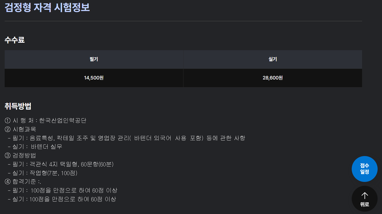 - 합격 기준: 100점 만점 중 60점 이상