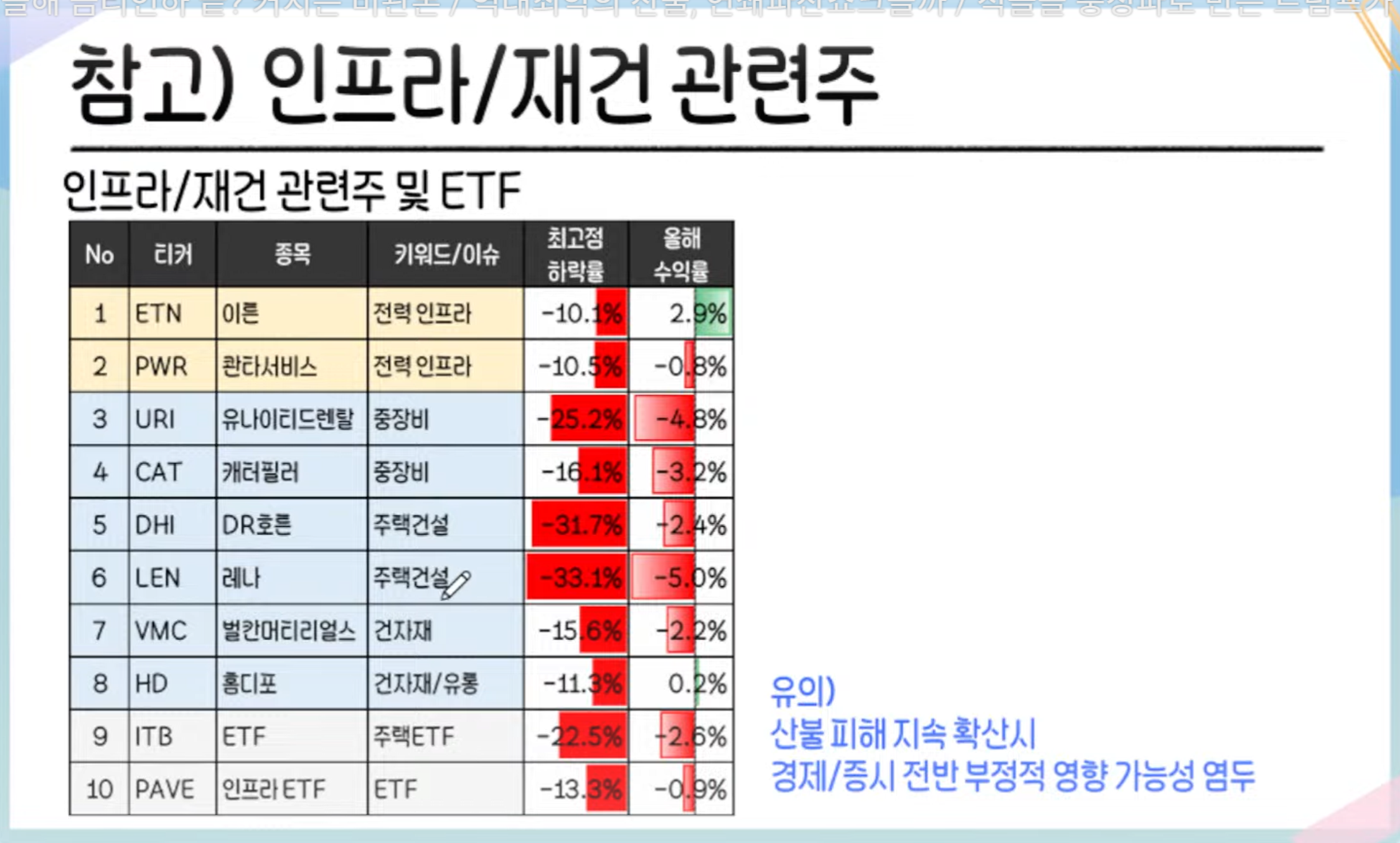 - 관련 산업의 기회: 중장비, 건설, 건자재 등 재건 관련 산업과 기업들이 주목받고 있습니다.