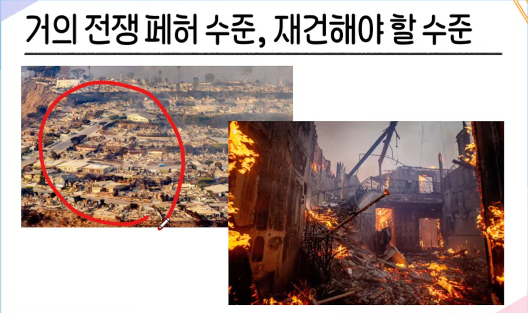 - 산불의 확산: 피해 지역이 주로 고급 주택가와 부촌에 집중되어 있어 경제적 손실이 더욱 커지고 있습니다.